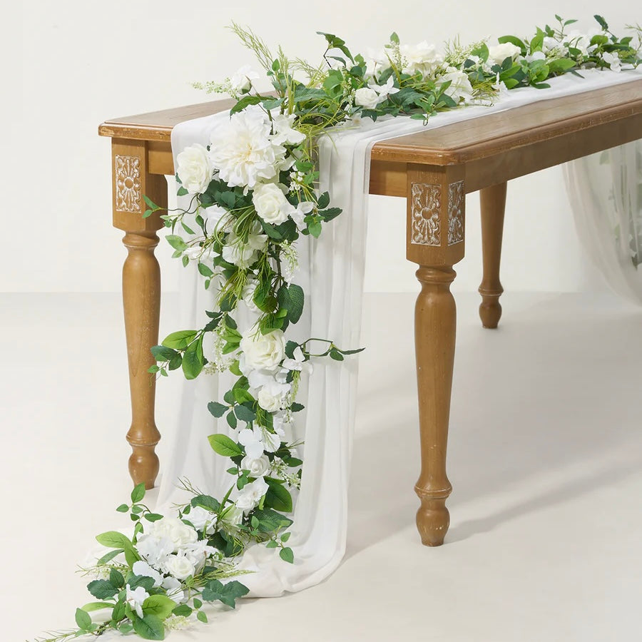 Elevate any event or space with our floral garland. This stunning garland features a variety of flowers that add a touch of elegance to any table or decor. Perfect for weddings, parties, or everyday home decor. Bring the beauty of a blooming garden indoors.