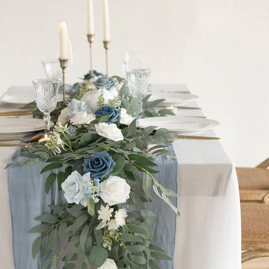Elevate any event or space with our floral garland. This stunning garland features a variety of flowers that add a touch of elegance to any table or decor. Perfect for weddings, parties, or everyday home decor. Bring the beauty of a blooming garden indoors.